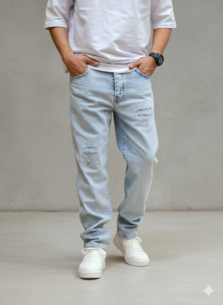 شلوار جین دمپا فیت پارچه ترک آبی روشن