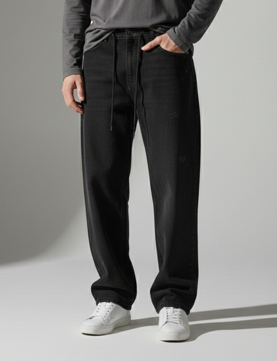 شلوار جین نیم بگ ذغالی پارچه ترک