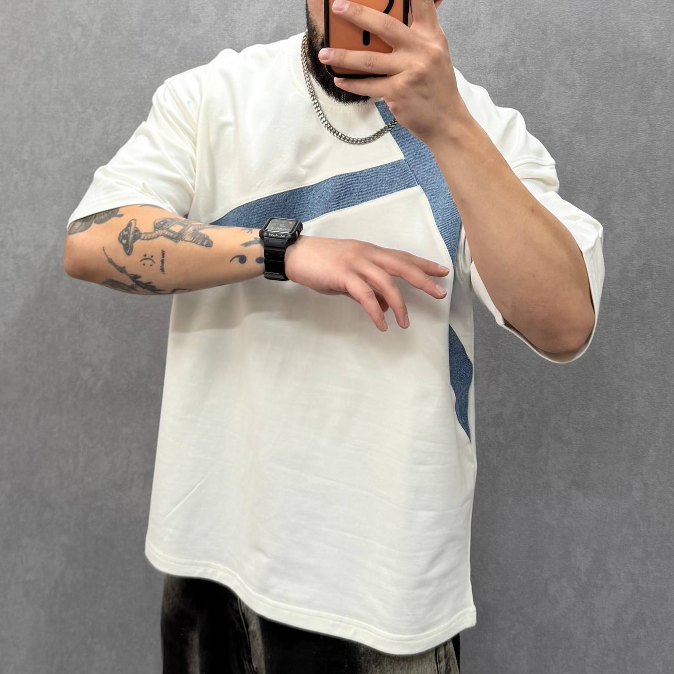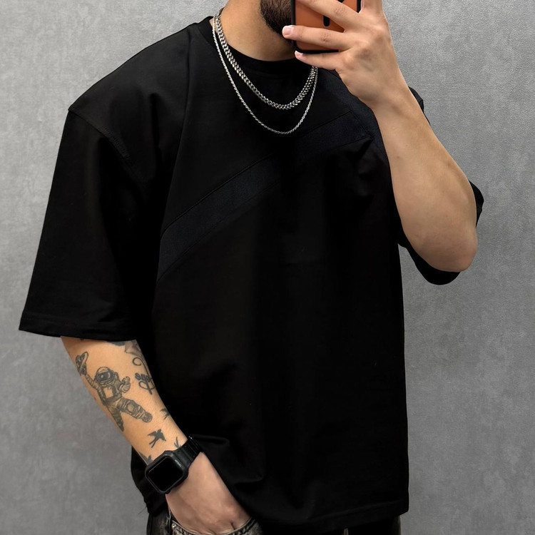 تیشرت تکه دوزی جین برش باکسی